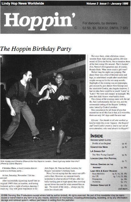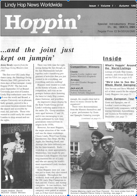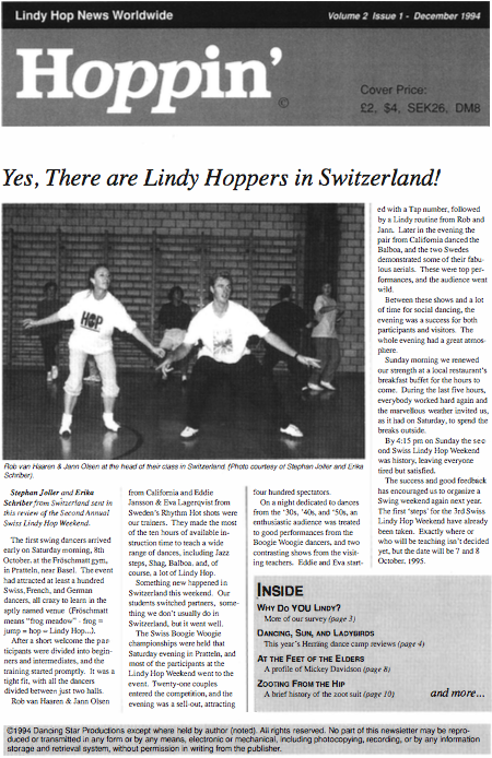 In the 1990s, a small but passionate group of volunteers from around the world gathered and published information about the fledgling worldwide Lindy Hop scene as it was then.